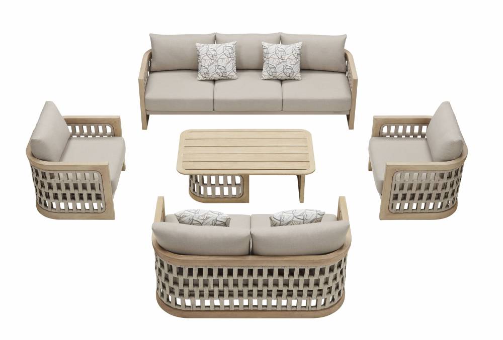 Our Porto Collection is our newest design, and it features a solid teak wood base and exceptionally strong all weather rope. Extremely sturdy with timeless lines which will never go out of style and yet provides extreme comfort.
